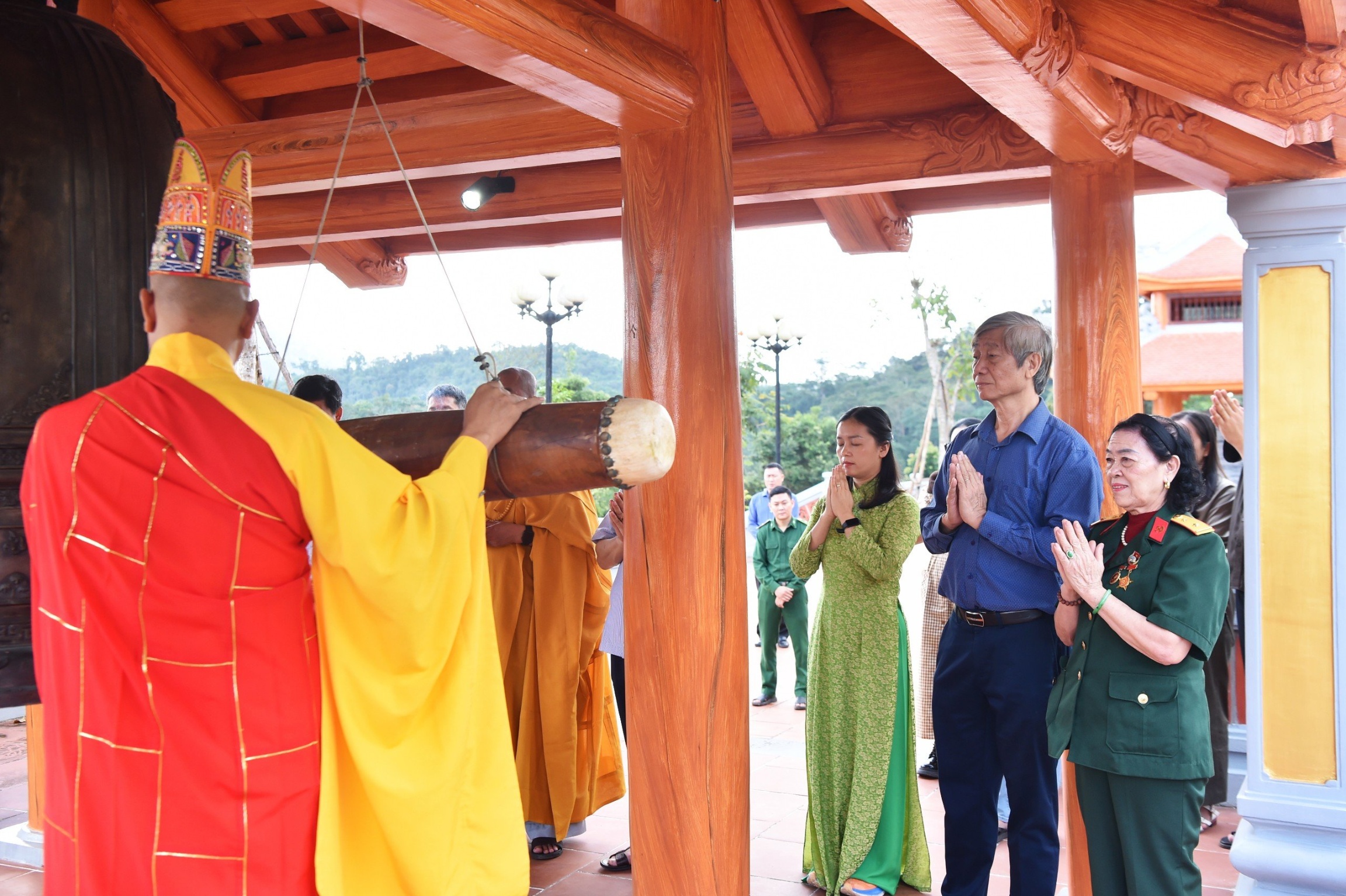 Thực hiện các nghi thức Phật giáo an vị tượng Bác là các Thượng tọa Thích Vạn Huy – Trụ trì Tổ đình Giác Hoàng; Thượng tọa Thích Nhuận Trí – Trụ trì Tổ đình Thiên Đức; Thượng tọa Thích Nhuận Tín – Trụ trì Tổ đình Thiên Sanh; Thượng tọa Thích Giác Quang – Trụ trì chùa Pháp Hải; Thượng tọa Thích Nhuận Huệ – Trụ trì Tổ đình Long Đức, đến từ Giáo hội Phật Giáo tỉnh Bình Định.